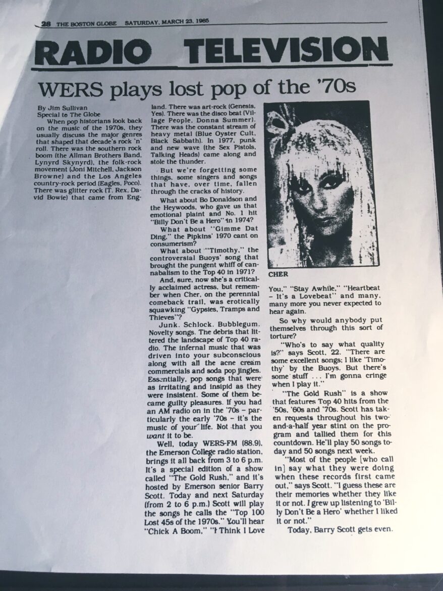 1985: “The Lost 45s” First Top 100 headline in The Boston Globe!